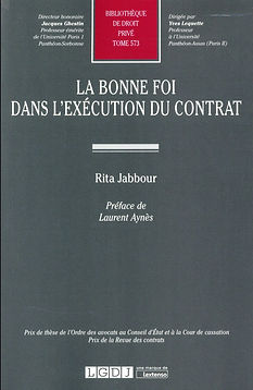 2016 La bonne foi dans l’exécution du contrat, thèse Paris I, préf. Laurent Aynès, t. 573, LGDJ, coll. Bibliothèque de Droit Privé (Juillet 2016, 487 pages- Publication à compte d’éditeur).